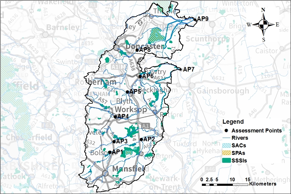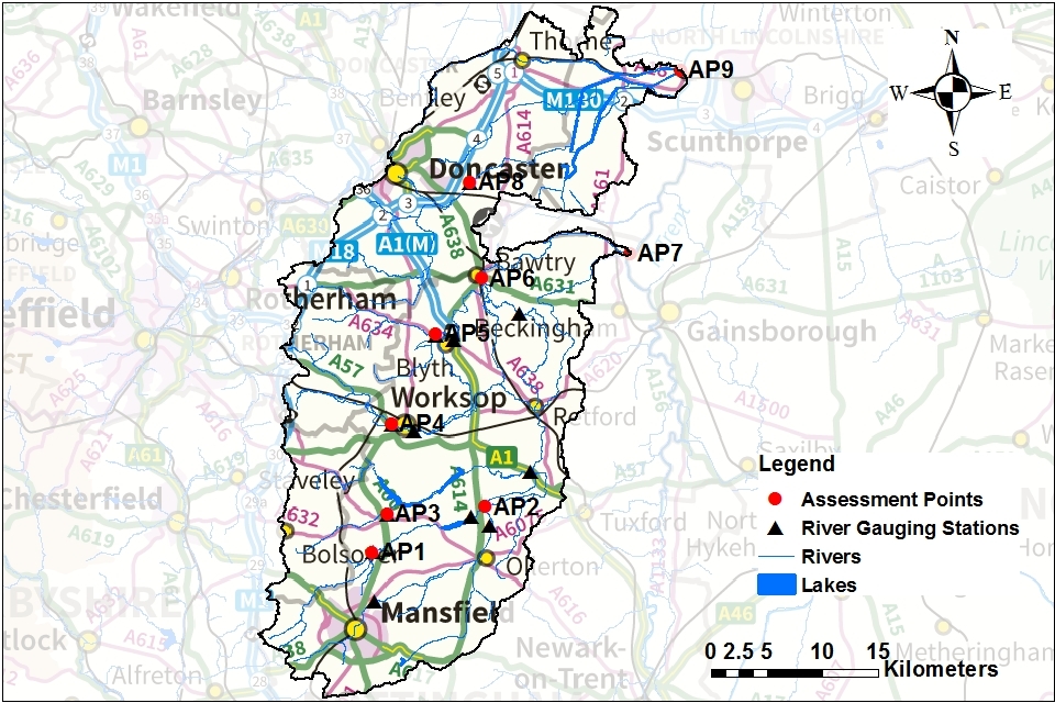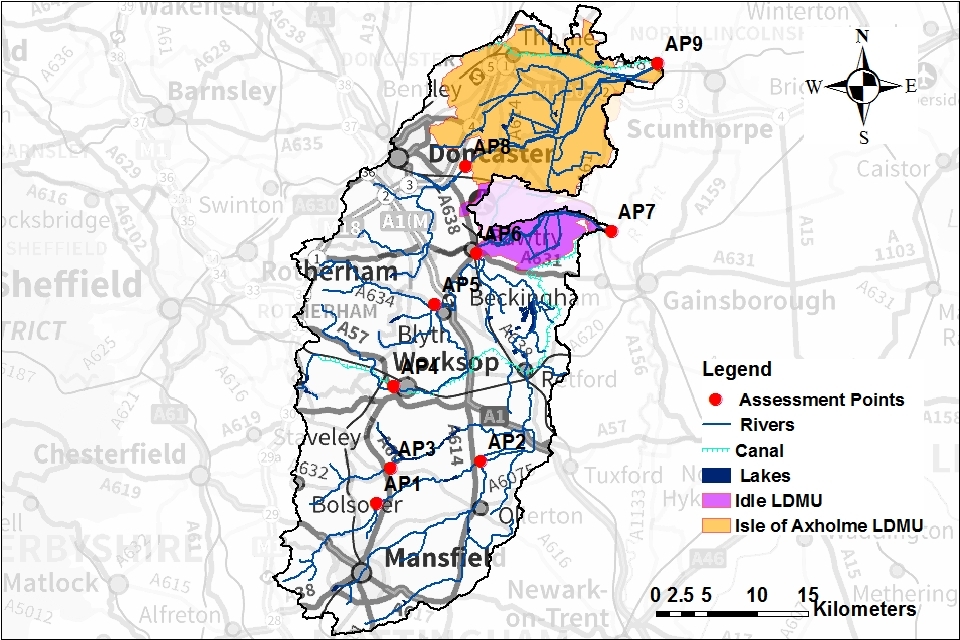 The catchment of the Idle and Torne rivers covers an area of approximately 1,200 km2. Nottinghamshire and South Yorkshire are the principal counties within the catchment. However, Derbyshire and North Lincolnshire cover areas to the south west and north east of the catchment area respectively. Significant towns located wholly or partially within the boundaries of this ALS area (see Map 1) include: