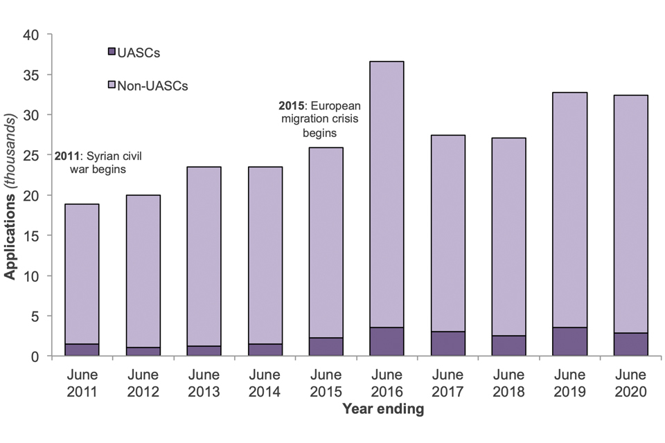 - Asylum applications and initial decisions, including unaccompanied asylum-seeking children (UASC)