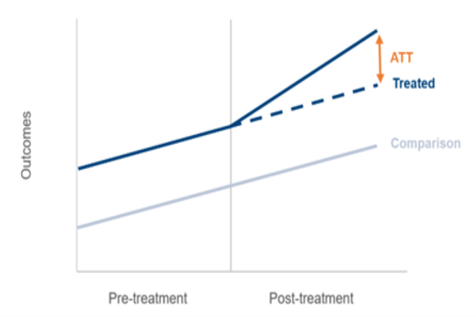 | Difference in Difference (DiD) | DiD analysis is an impact evaluation technique, seeking to estimate the effect of a treatment on an outcome of interest through assessing change over time in an outcome for a treatment group relative to the average change over time for a control/comparison group. |