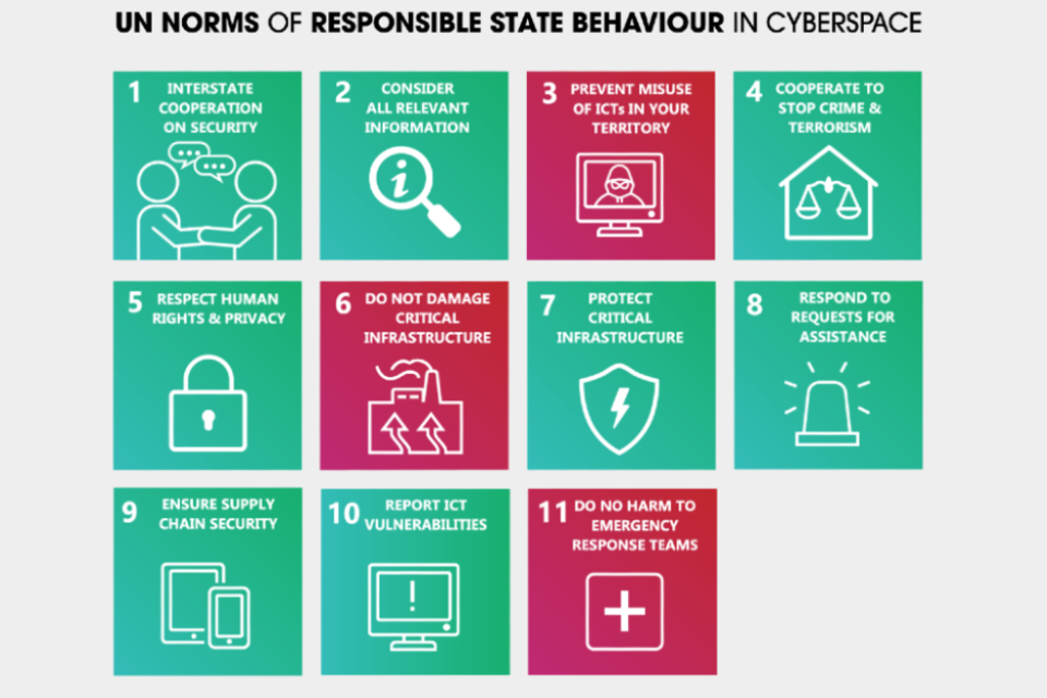 The international community previously agreed 11 norms of responsible behaviour in cyberspace. In partnership with Australia’s Department of Foreign Affairs and Trade and the Australian Strategic Policy Institute (ASPI) the UK has created the following materials to promote the implementation of norms.