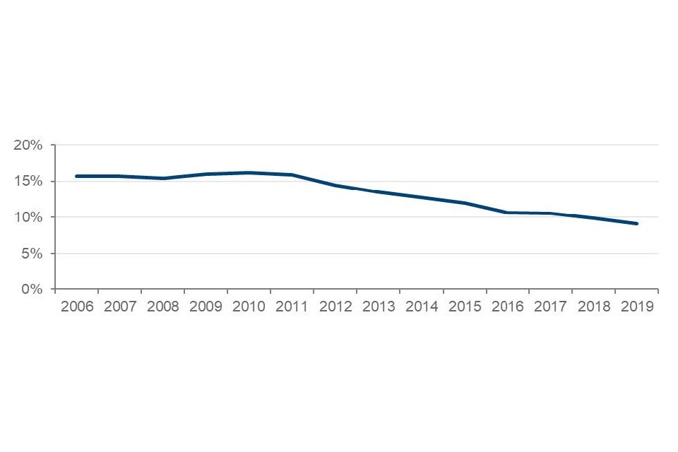Proportion of children living in long-term workless households (UK), 2006 to 2018