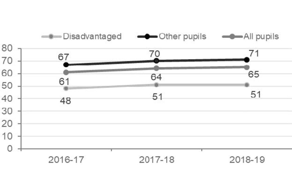 The attainment at key stage 2 has remained constant in 2018-19 for the disadvantaged group, and increased by 1 percentage point for other and all pupils.