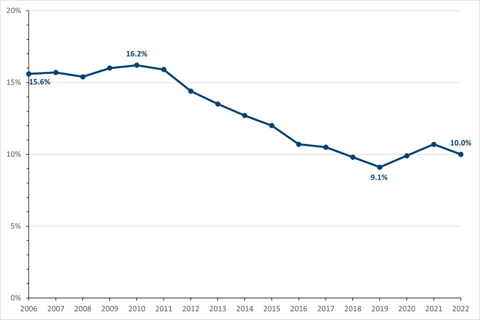 10% of all children (around 1.28 million children) were living in workless households in the fourth quarter of 2022. This has decreased by approximately 84,000 children from the previous year.