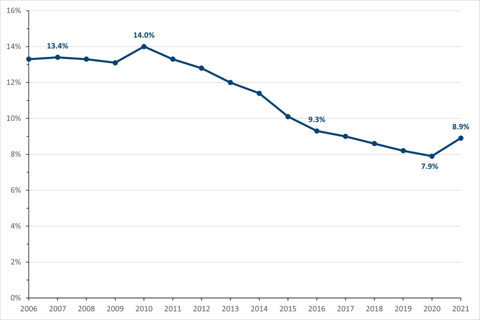 8.9% of all children were living in workless households for at least 12 months in 2021