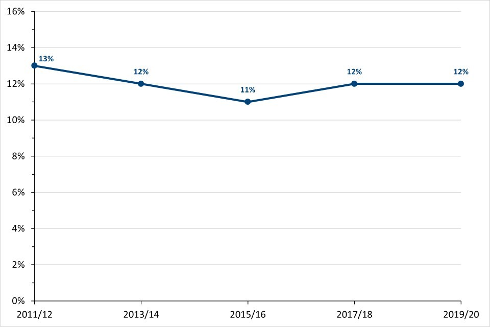 12% of children in couple-parent families were living with at least one parent reporting relationship distress in 2019/20