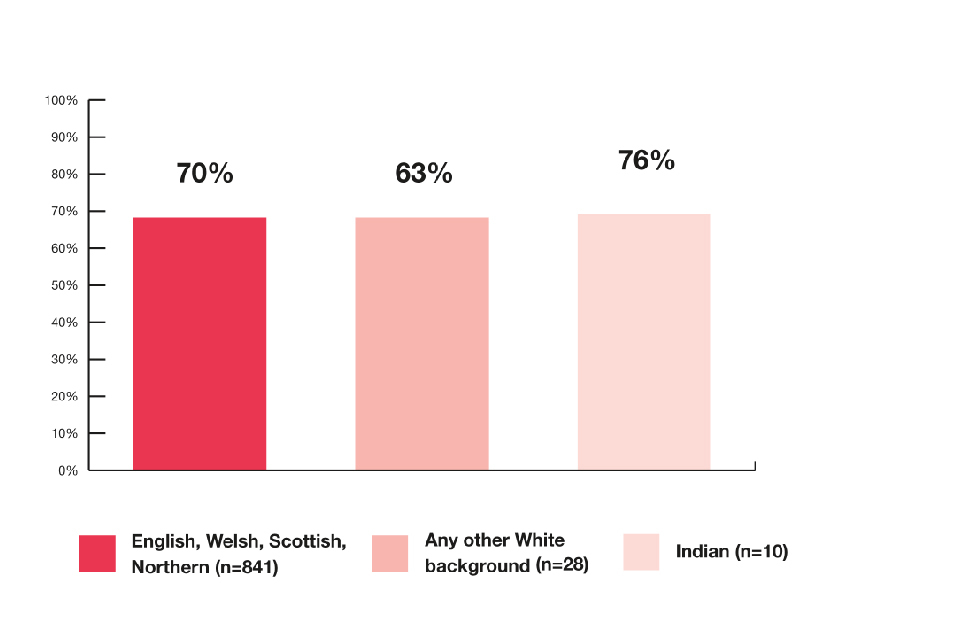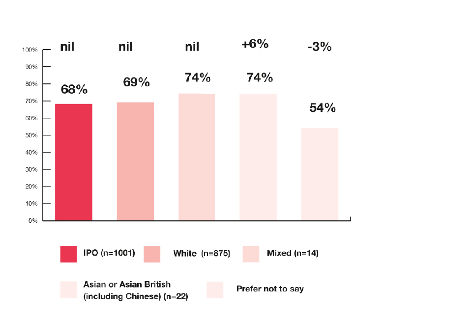- many of the groups have their data suppressed due to data protection requirements but we do have data on the following groups with greater than 10 respondents