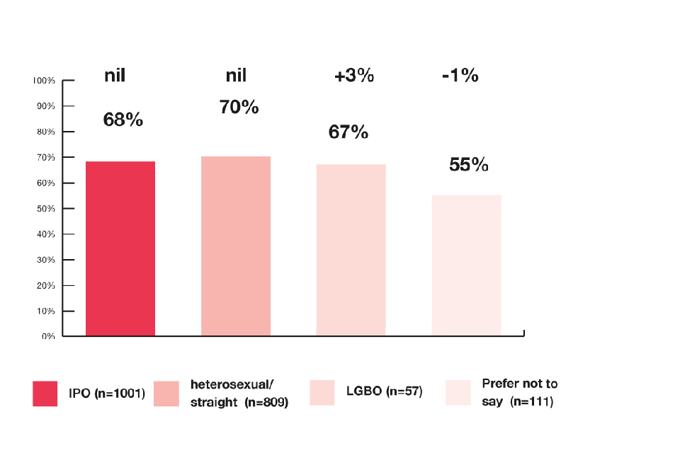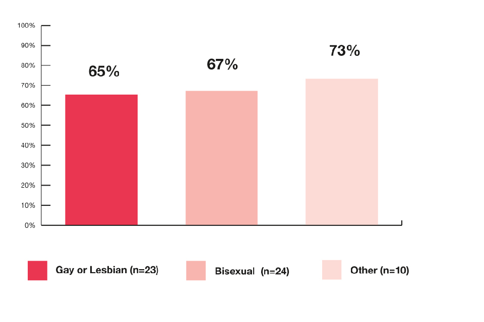 - beyond the binary grouping on the previous graphs, we have additional data broken down into some of the specific LGBO orientations. We did not have this data last year for us to make comparisons with