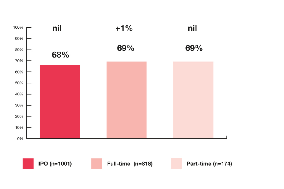 - similar trend to last year with those working part-time hours similarly as engaged as those working full-time