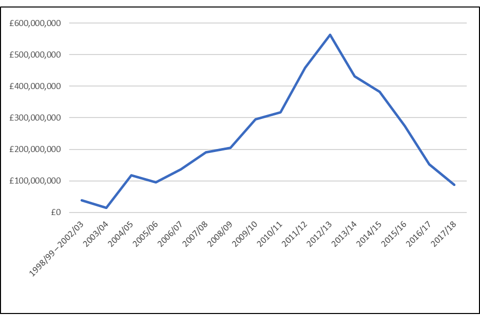 | 2012 to 2013 | £163,000,000 | £563,000,000 |