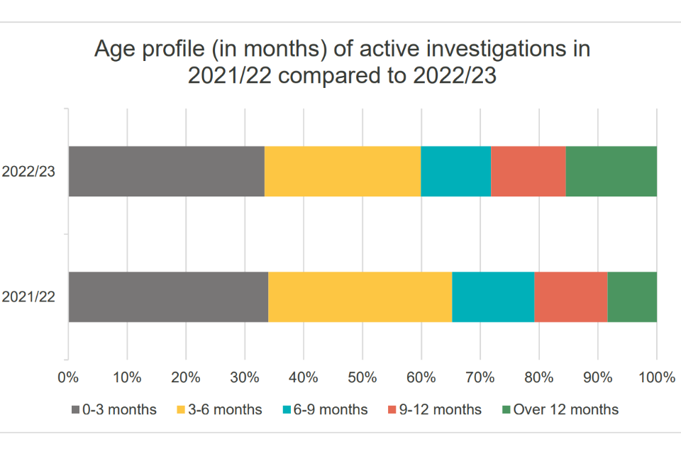 We have achieved a lot in 2022/23, hitting most of our targets. We have beaten our target to complete 85% of core investigations within 12 months, achieving 89%. The number of referrals that we received from forces has increased once again to over 6,200 this year. Despite this 15% increase on last year, we decided on the mode of investigation for 86% of referrals within three working days, beating our target and last year’s performance.
