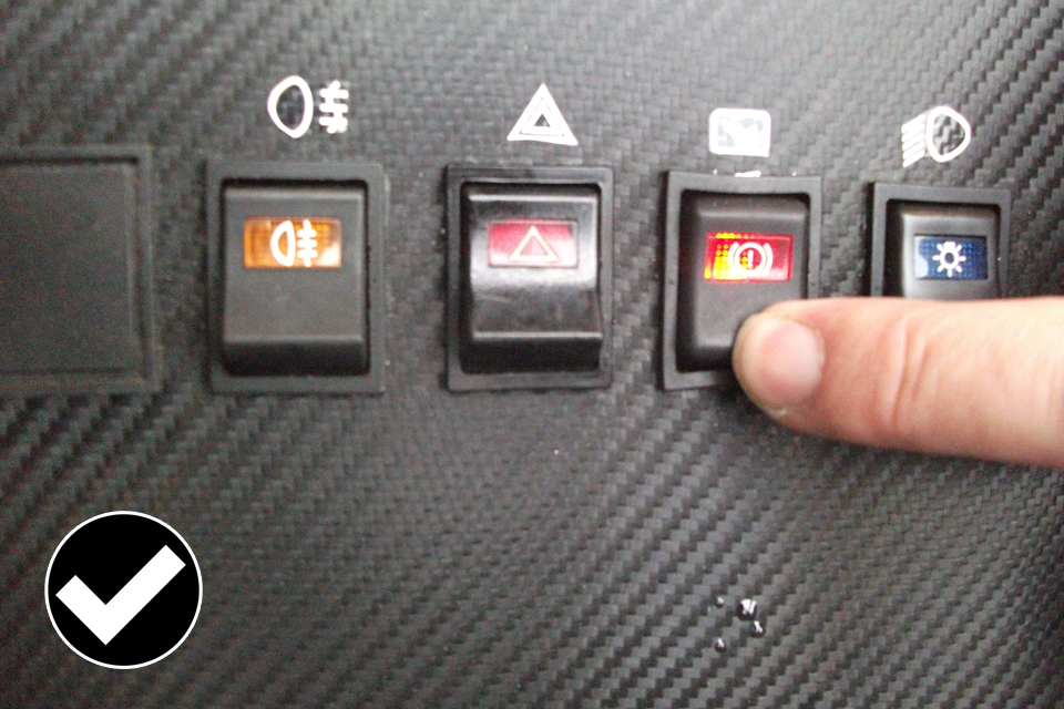 In the above image the switches protrude from the dash more than 9.5 mm but the sphere will contact the protective arches that have been ‘radiused’ to more than 2.5 mm first so in this example it meets the required standard.