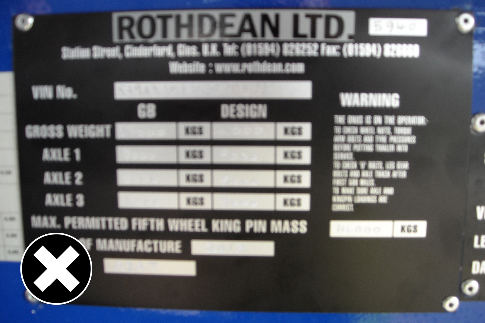 In the images above a trailer has been fitted with a plate. When DVSA uses the template to check, it’s found that the space is to small and doesn’t meet the required standard.