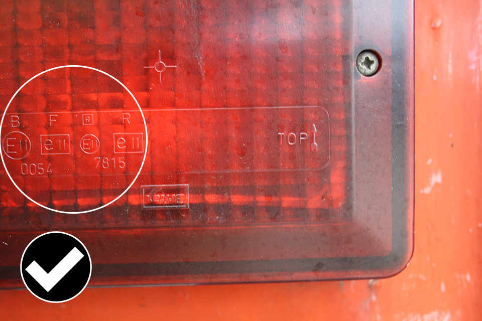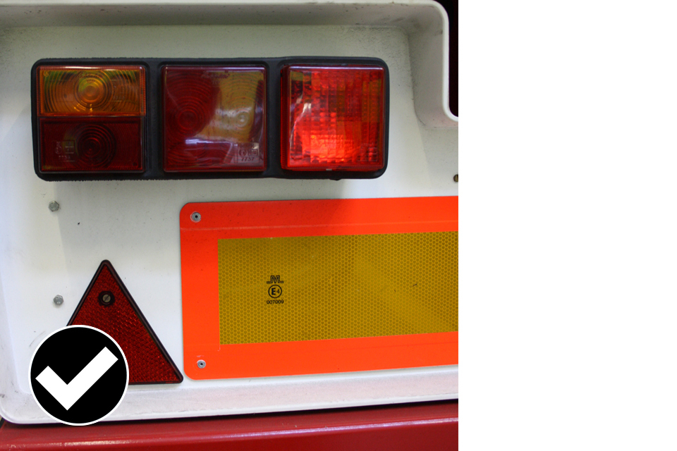 At least one approval mark must be visible on the conspicuity material fitted to both sides and rear of your trailer.