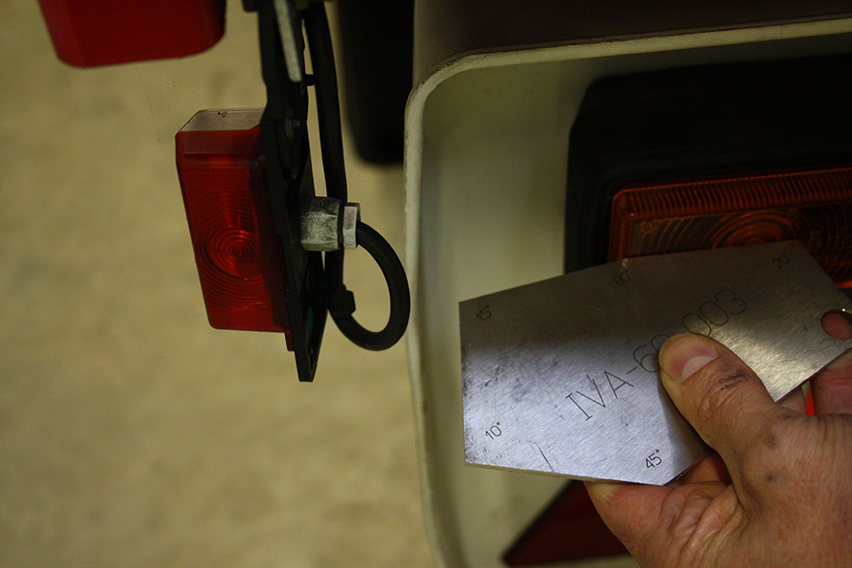 DVSA will use a gauge/template to check compliance of mudguard and rain flaps - it’s based on the diagrams in section 43 (spray suppression) of the IVA inspection manual.