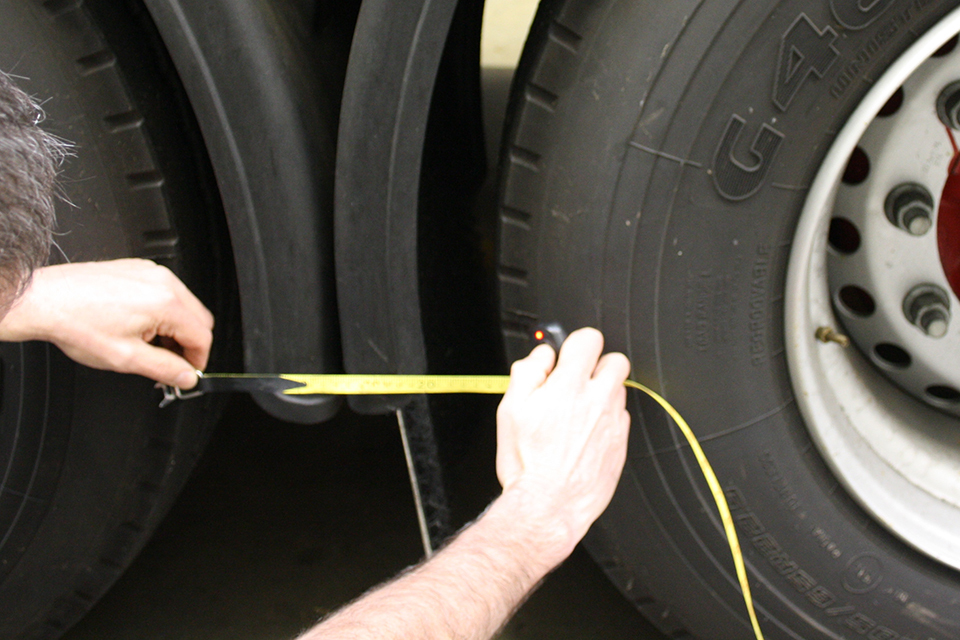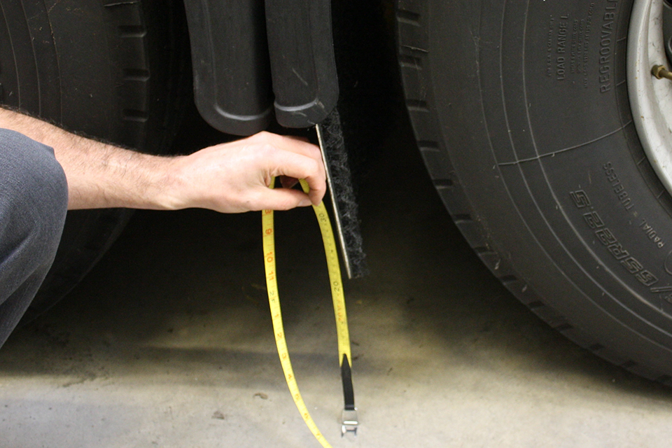 DVSA will measure the spray suppression to make sure they cover the width of the tyre.