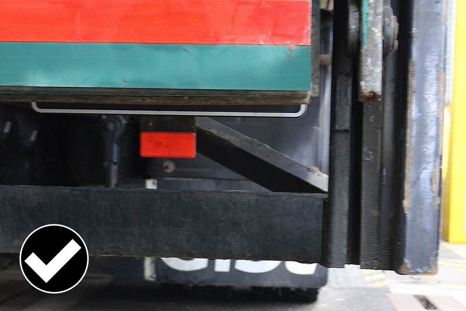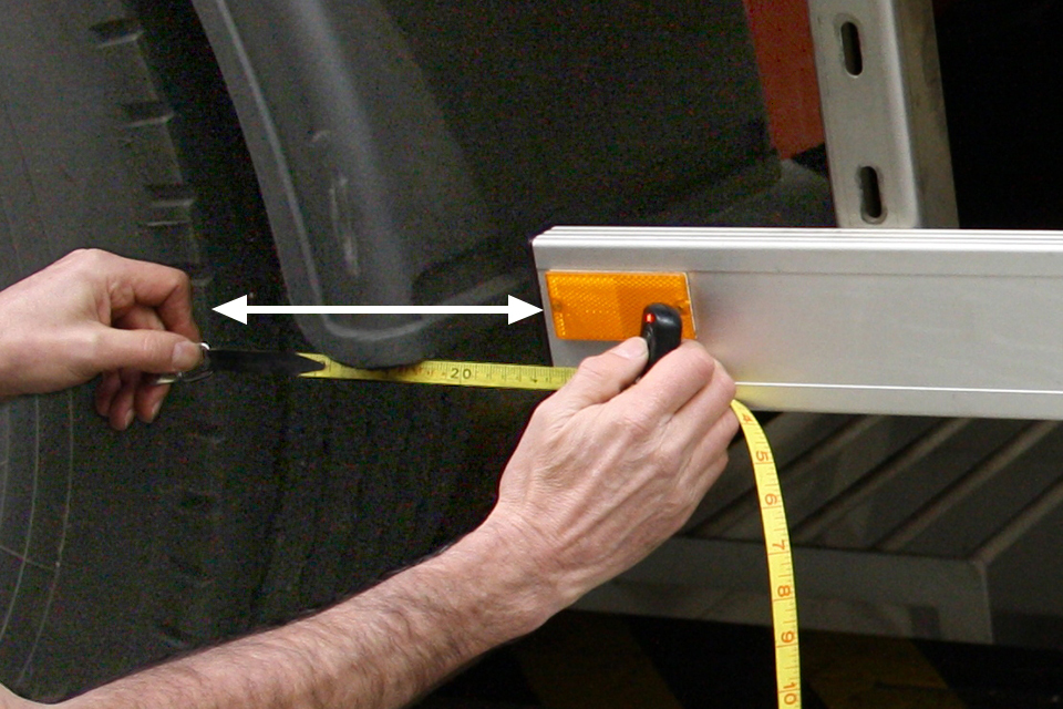 The image above shows that DVSA will measure the height that the RUPD is fitted at. It mustn’t be more than 550mm from the ground.