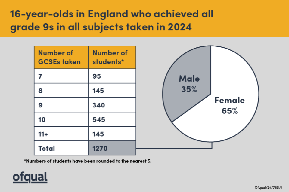 All grade 9s in all subjects taken in 2024, 16-year-olds — England only