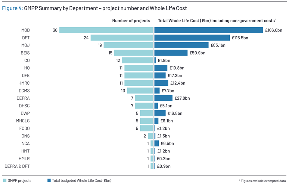 Figure 4: GMPP Summary by Department – project number and Whole Life Cost