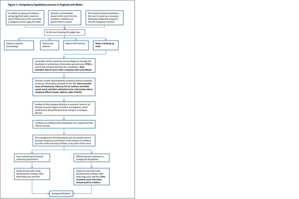 A simplified summary of the compulsory liquidation process in England and Wales is summarised in Figure 1 below.