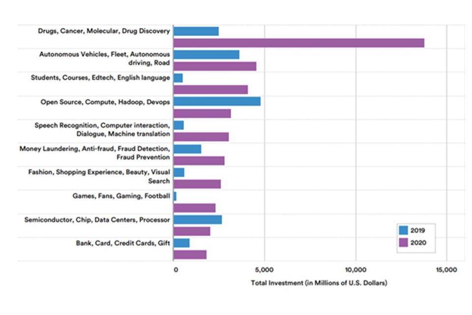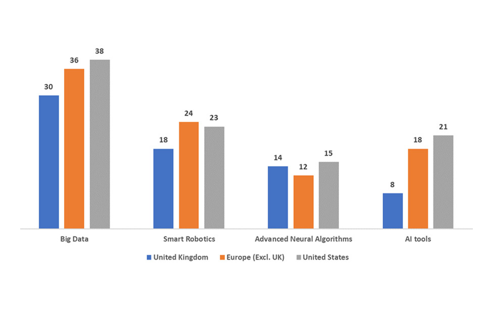 the UK is number three in the world as a destination for private investment in AI (behind United States of America (USA) and China) and number one in Europe in 2020 (Zhang, et al., 2021);