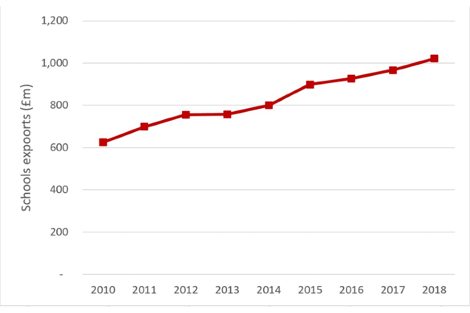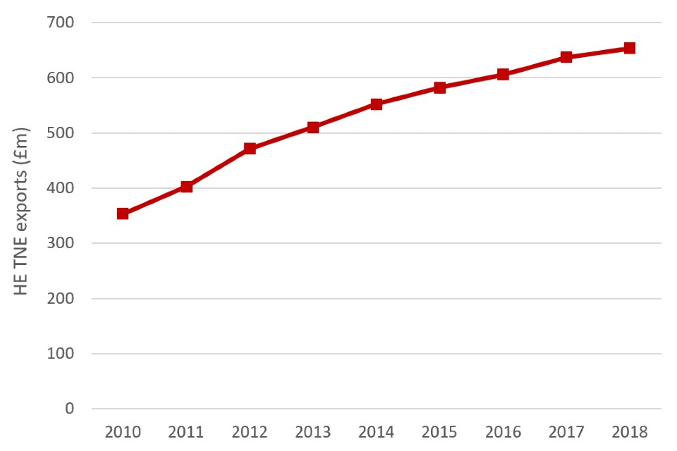 Source: DfE, 2020, UK revenue from education related exports and transnational education activity 2018