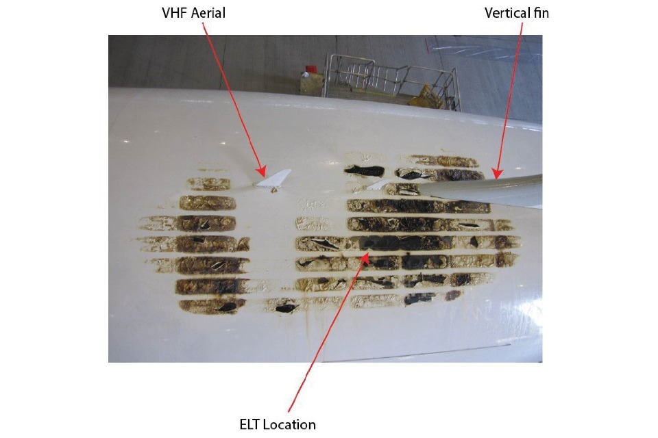 Figure 2: ET-AOP heat damage to the upper fuselage