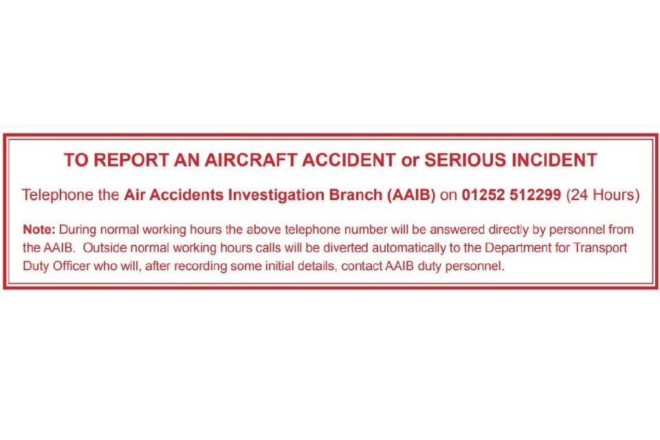 However, Serious Incident investigation depends on the prompt notification of the occurrence to the AAIB so we can make a timely decision whether to investigate or not and the required actions can be taken to preserve the perishable evidence. At the time of initial notification, the information available may be quite limited or inaccurate which can sometimes make it difficult to assess whether there was a high probability of an accident. If in doubt, report the occurrence to the AAIB so we can gather evidence and assess the occurrence more fully. Further information is available at Report an air accident or serious incident - GOV.UK.