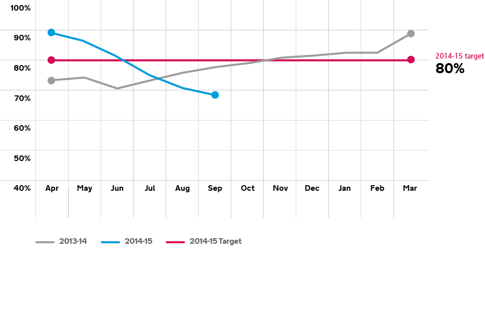 The figures contained in this briefing are initial management information to provide an indication of our performance during 2014 to 2015, and are subject to revision and audit. Final performance figures will be made available when we publish the audited accounts and departmental report. ↩
