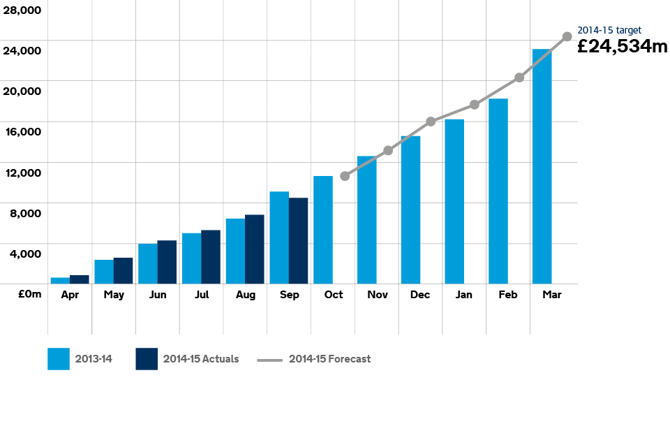 Yn ystod yr un cyfnod, casglodd ein gweithrediadau cydymffurfiad £8.8 biliwn o refeniw ychwanegol. Rydym yn hyderus y byddwn yn cwrdd â’n targed diwedd blwyddyn o £24.5 biliwn, gan fod proffil ein refeniw cydymffurfiad fel arfer tipyn yn uwch yn ystod ail hanner y flwyddyn na’r hanner cyntaf. Rhwng 2011 i 2012 a 2015 i 2016, rydym yn disgwyl casglu dros £110 biliwn o refeniw cydymffurfiad ychwanegol.