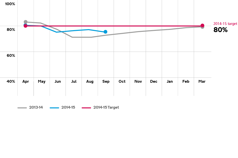 Mae’r ffigurau yn y brîff gwybodaeth hwn yn wybodaeth rheoli gychwynnol sy’n arwydd o’n perfformiad yn ystod 2014 i 2015, ac maent yn agored i gael eu diwygio a’u harchwilio. Bydd ffigurau perfformiad terfynol ar gael pan fyddwn yn cyhoeddi’r cyfrifon archwiliedig ac adroddiad yr adran. ↩