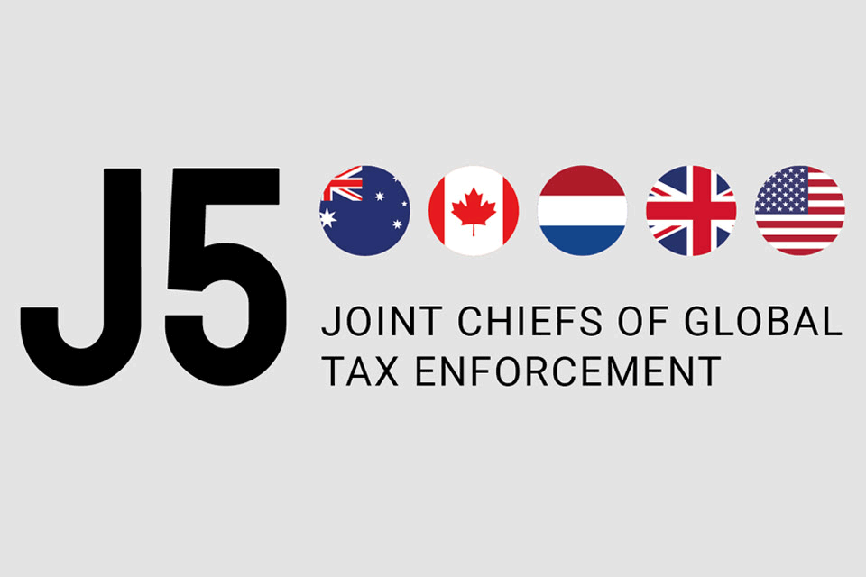 HMRC is one of five international partner organisations that form the Joint Chiefs of Global Tax Enforcement, also known as ‘the J5’. The group brings together tax fraud enforcement organisations from Australia, Canada, the Netherlands, the United Kingdom and the United States of America.