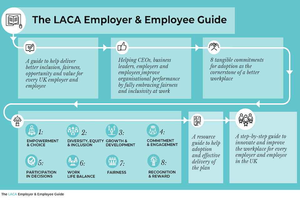 A guide by Leaders as Change Agents (LACA) to help deliver better inclusion, fairness, opportunity and value for every UK employer and employee.