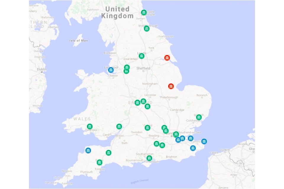 A number of libraries (including the above also have 3D printers). These have been plotted on a map.