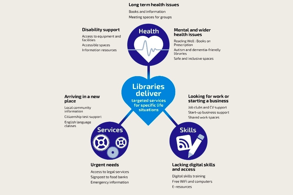 - highlighting how libraries can help achieve the objectives of central and local government and other partners