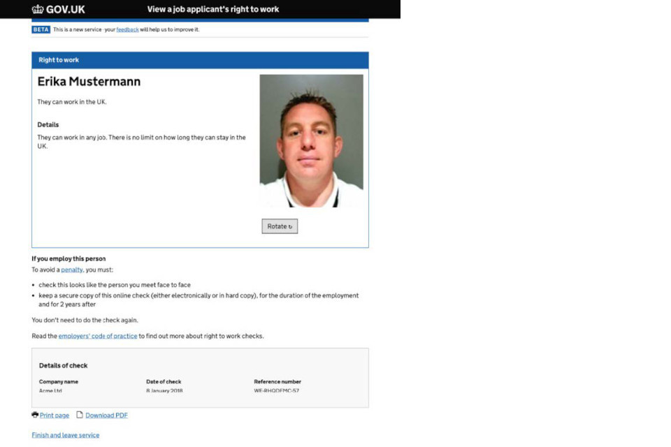 2. gwiriad hawl i weithio gabn ddefnyddio IDVT trwy wasanaethau IDSP (dinasyddion Prydain ac Iwerddon yn unig)
