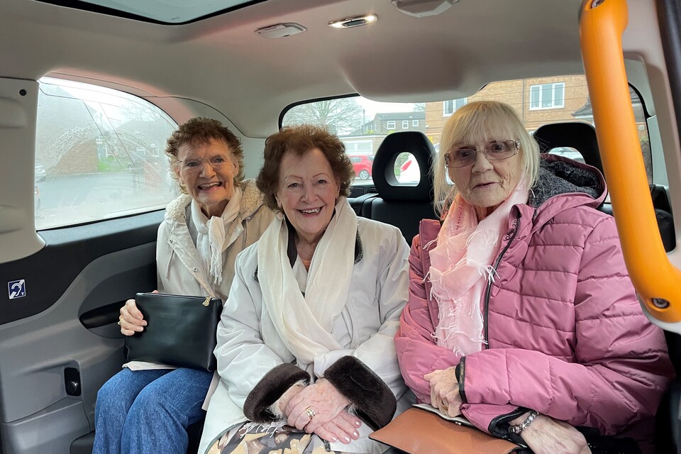 Joyce, Brighid and Valerie (pictured) are Happy Cabbers who enjoy taking rides to activities such as yoga sessions, shopping trips and Christmas quizzes.