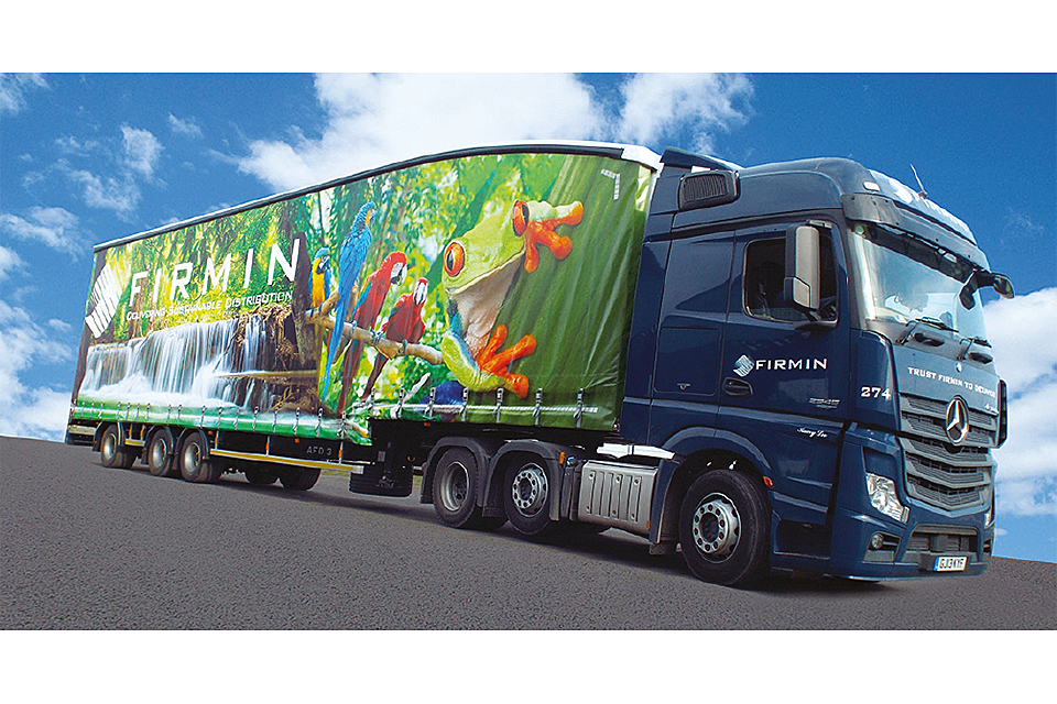 Tractor unit and longer semi trailer in the livery of Firmin distribution