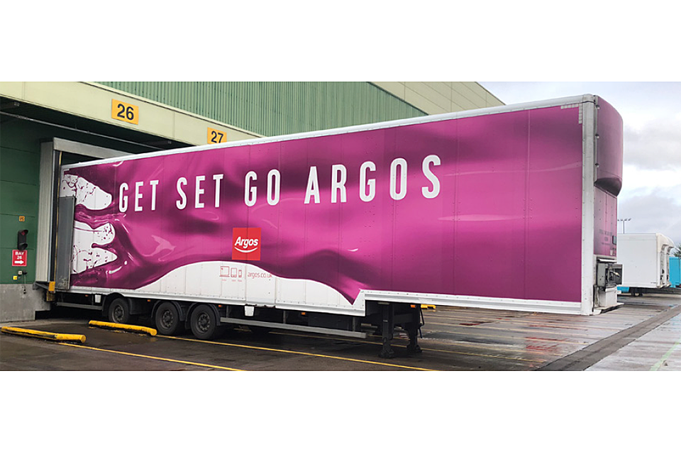 Longer semi-trailer in Argos at a loading dock