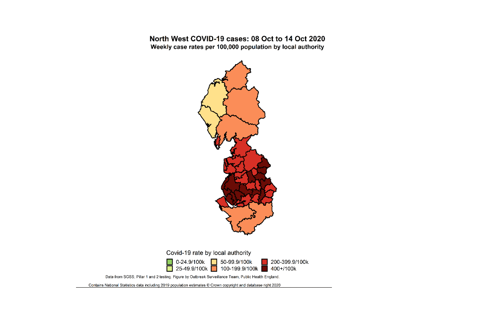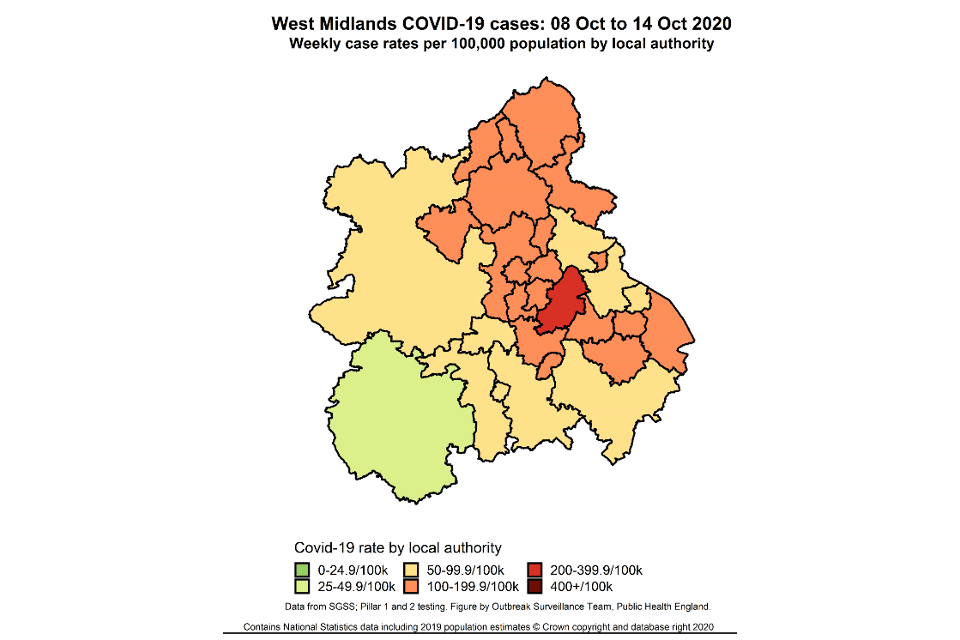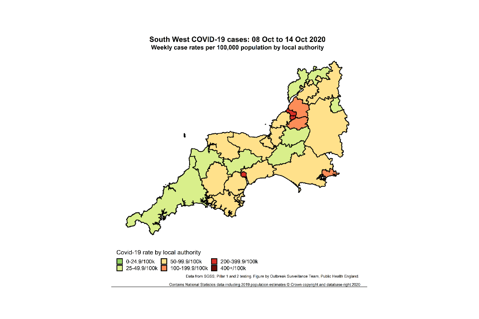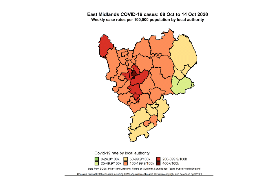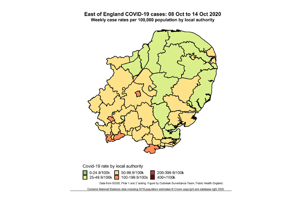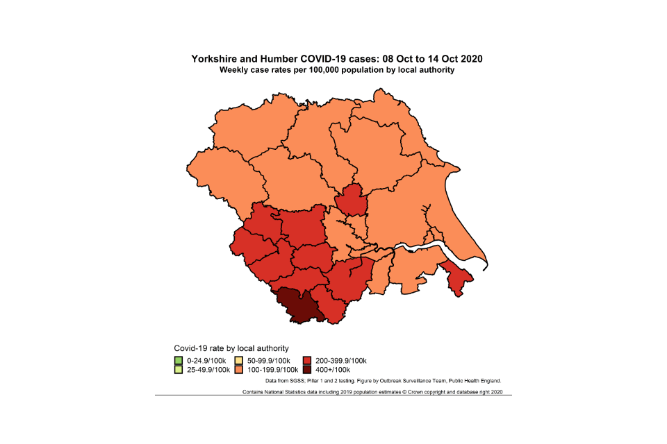 The below maps show the concentration of COVID-19 cases by regions in England for the period of 8 to 14 October 2020.