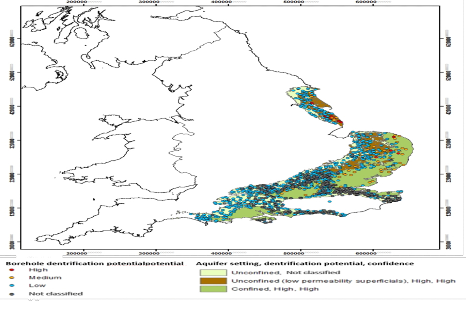 Denitrification is the dominant process for nitrate attenuation in groundwater and can, under certain environmental conditions, significantly reduce the total nitrogen in groundwater. It is therefore helpful to regulators and water resources managers to have an indication of where denitrification is likely to be occurring and the supporting evidence base.