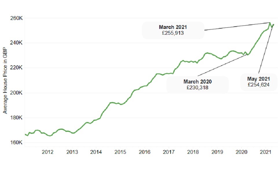 In March 2021, the Chancellor announced that the relief would end on 30 June 2021 but announced a tapered extension until the end of September 2021. As the graph below shows, property prices seem to have levelled off since March 2021.