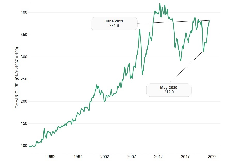 The graph below shows the ONS oil index and we can see that prices have now returned to pre-pandemic levels.