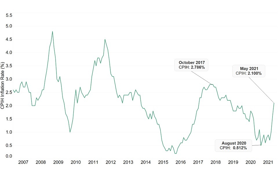 The chart below shows the CPIH inflation rate over the last 15 years.