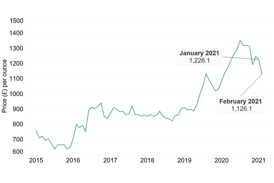 Gold prices decreased for the second month in a row, falling to £1,126.10 per ounce. There is a decreasing trend over the past 7 months which continued over February. We can ascribe some of the decrease in value to a growing sense of certainty in the wider market.
