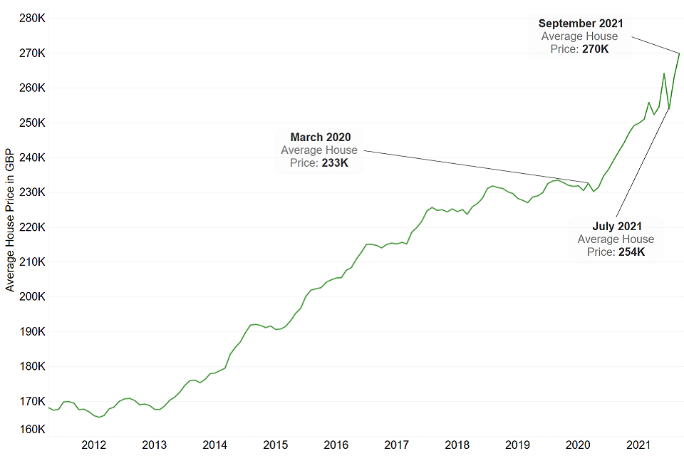 More generally, we have seen the trend in house prices accelerate since the start of the pandemic. Increased demand from people re-evaluating their living needs due to a shift towards long-term home working being one of the key drivers in prices.