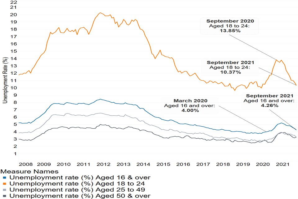 However, overall employment levels have not yet reached the levels observed at March 2020. Furthermore, data is not yet available beyond September 2021, where the Coronavirus Jobs Retention Scheme (furlough) is no longer in effect. We might see an increase the unemployment rates as employees may have been made redundant following the withdrawal of furlough.