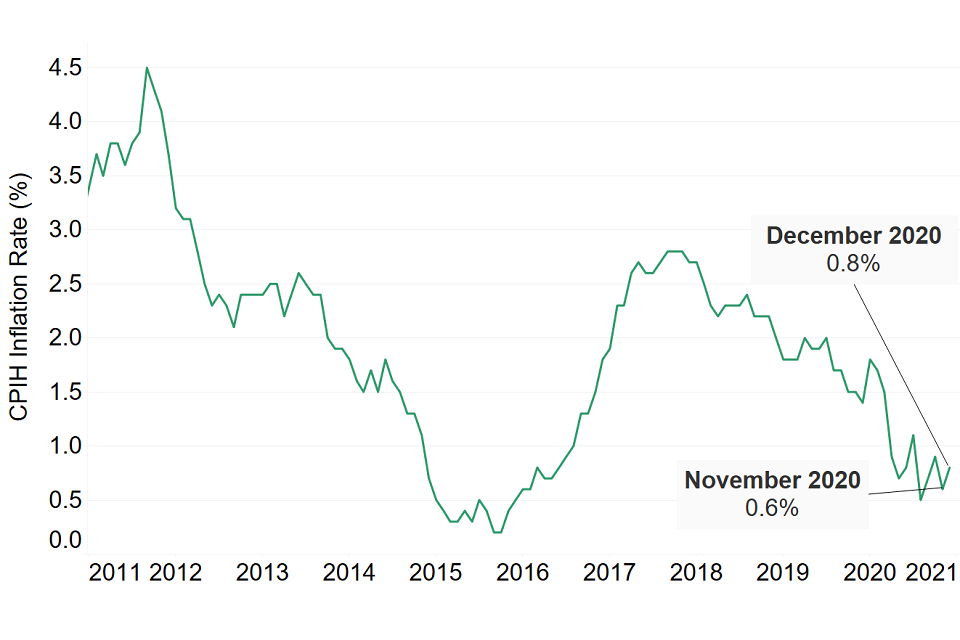 The chart below shows the CPIH inflation rate between January 2011 and December 2020.