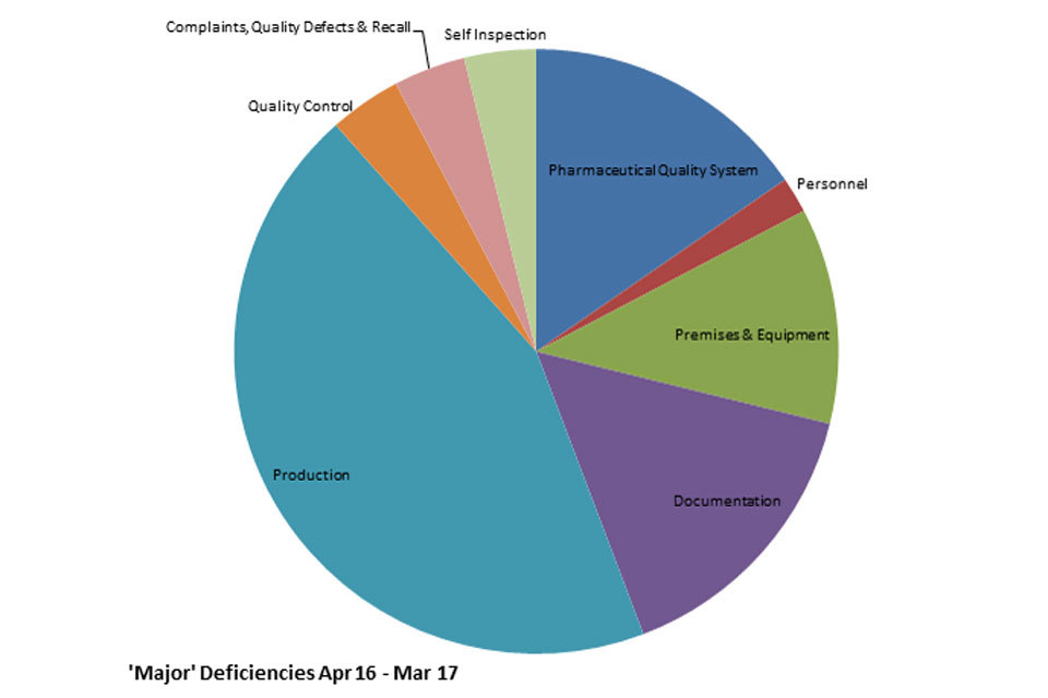 GMP Inspections Major deficiencies April 2016 to March 2017