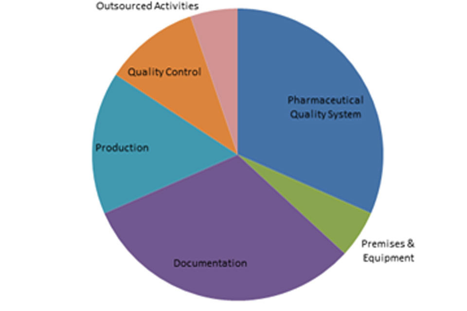 The distribution of inspection deficiencies for each of the nine GMP chapters is shown below. No critical deficiencies were cited in this period: