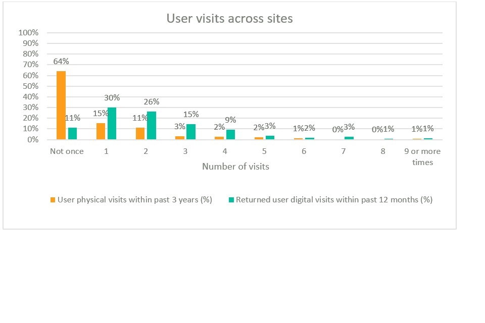While both experiential and authenticity considerations suggest that the physical offer should be valued more greatly than the digital offer, it should be noted too that the digital offer may in fact be valued greater by some users. Digital offer may be valued highly due to its ‘on demand’ nature, lack of congestion effects, which are known to reduce the value of visits,[footnote 40] and content features which deepen the experience. While the research presented in this report does not attempt to estimate the degree of substitutability between the offline and online offer, survey questions are used to generate insights on the differences in value to different users.